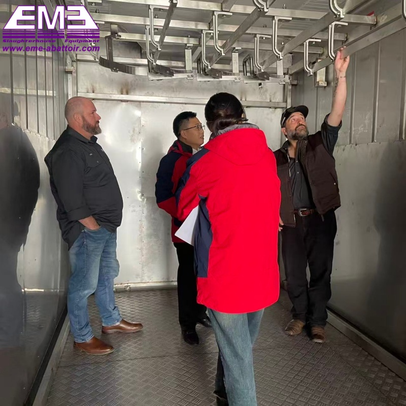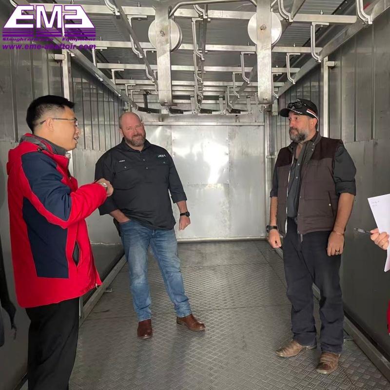 We successfully completed the acceptance of the project for Australian customers on this day. Our R&D and debugged containerized mobile slaughter equipment integrates mobility, efficiency and hygiene, covering livestock skinning, sectioning, cleaning, sorting and packaging. Messrs.